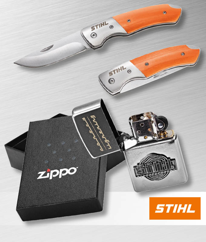 Le Zippo avec le logo STIHL est quant à lui un cadeau idéal pour vos proches – ou tout simplement pour vous-même ! Fabriqué dans la qualité Zippo éprouvée, ce briquet tempête n'est pas seulement un objet qui attire le regard, mais aussi un achat pour la vie.